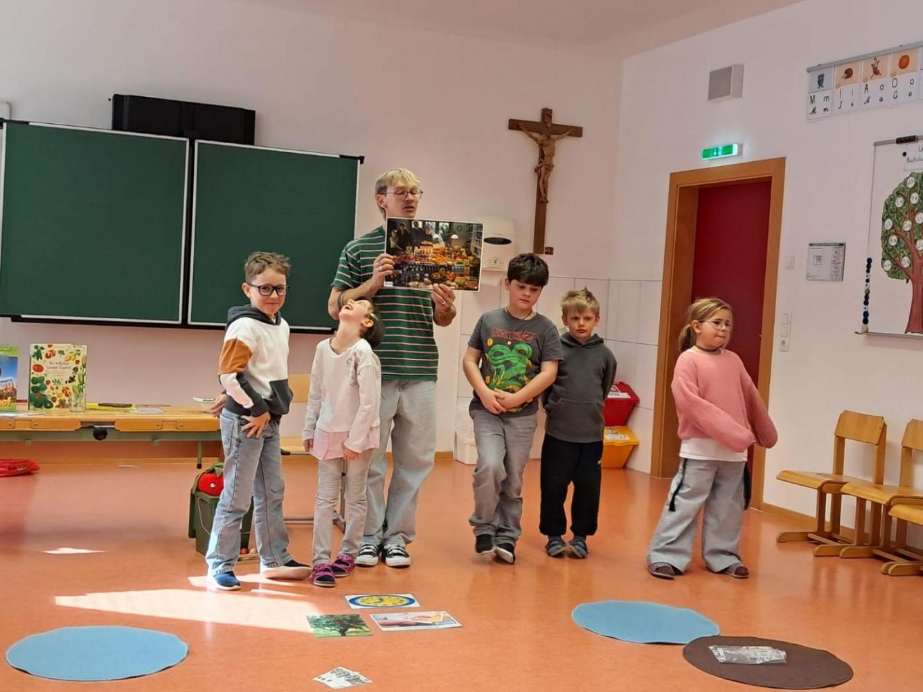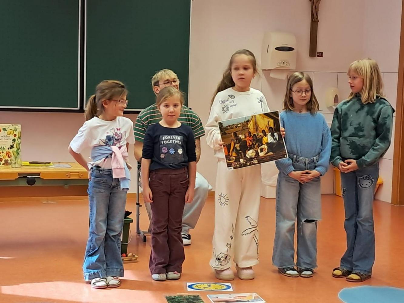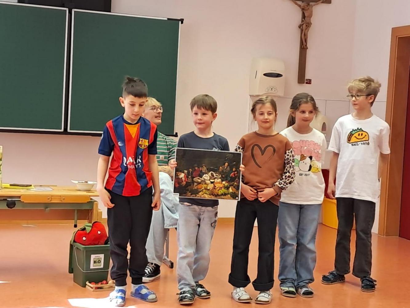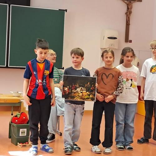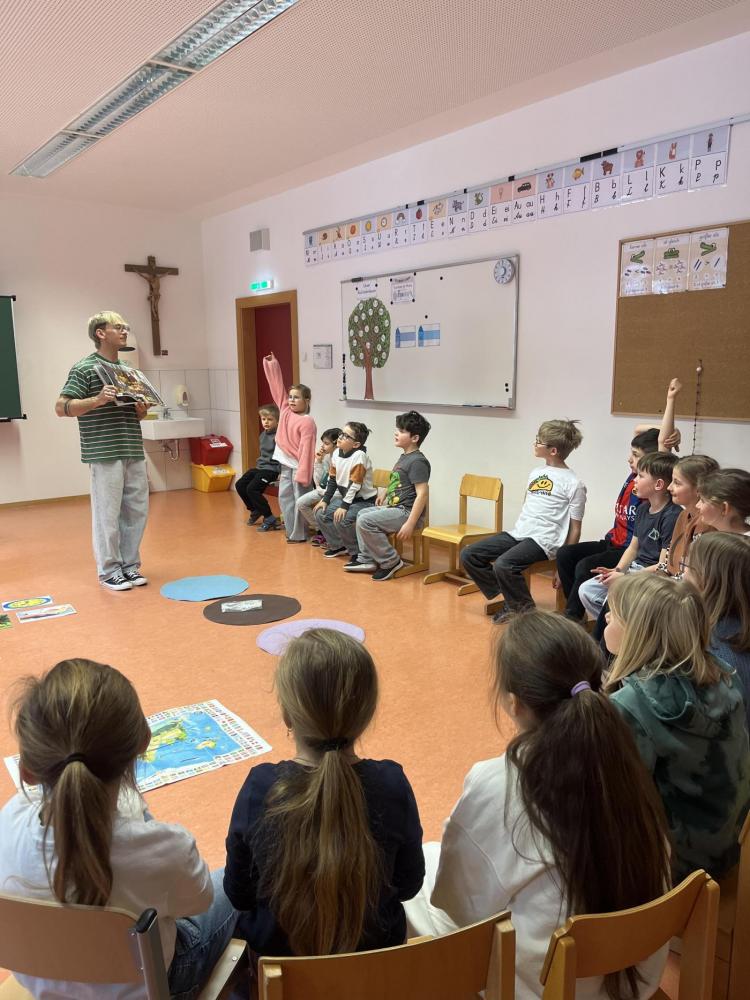 Im Workshop zum Thema „Lebensmittel im Abfall“ beschäftigten sich die Kinder der 2. Klasse mit unserem Umgang mit Essen. Gemeinsam wurde darüber gesprochen, wie oft Menschen einkaufen und wie unterschiedlich Essgewohnheiten in verschiedenen Ländern sein können. Die Schülerinnen und Schüler lernten dabei, warum Lebensmittel wertvoll sind und wie wichtig es ist, bewusst mit ihnen umzugehen.