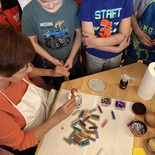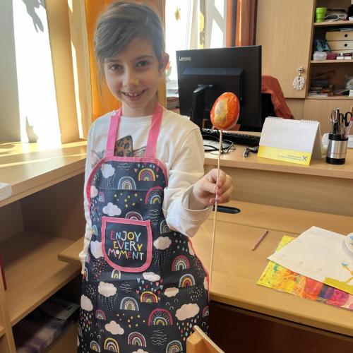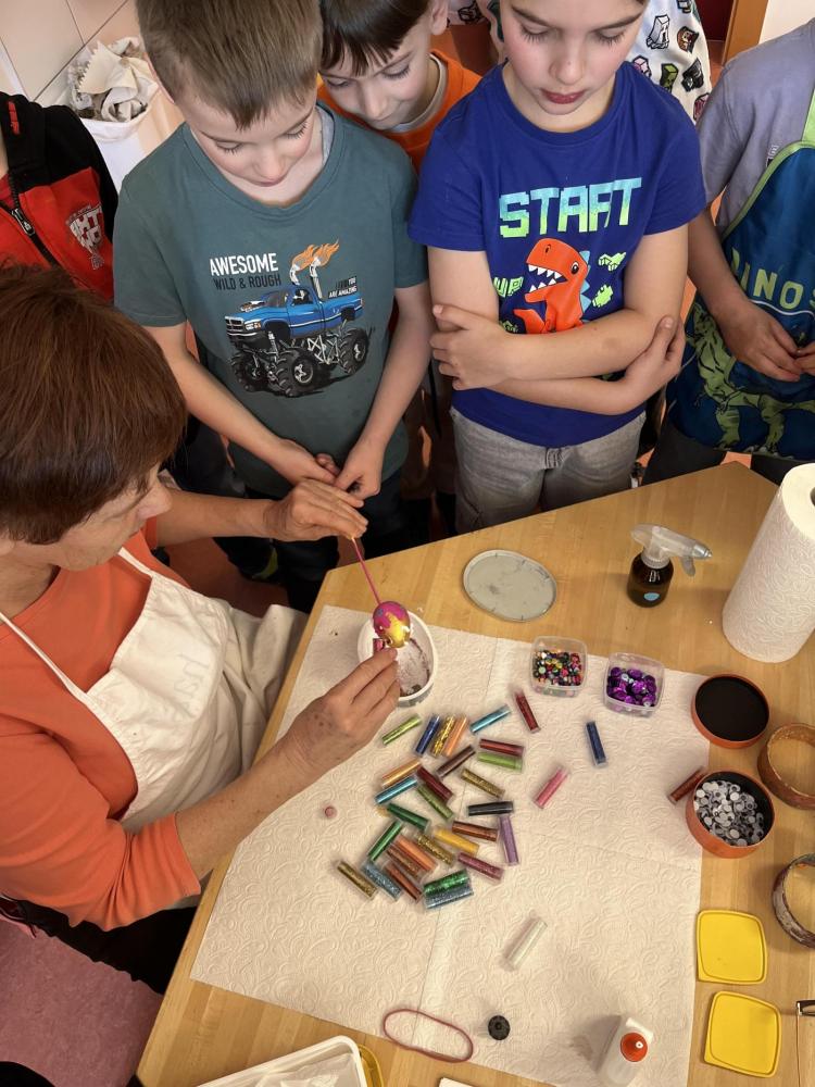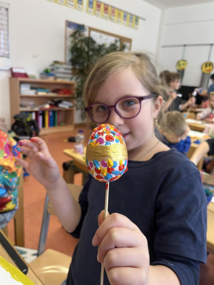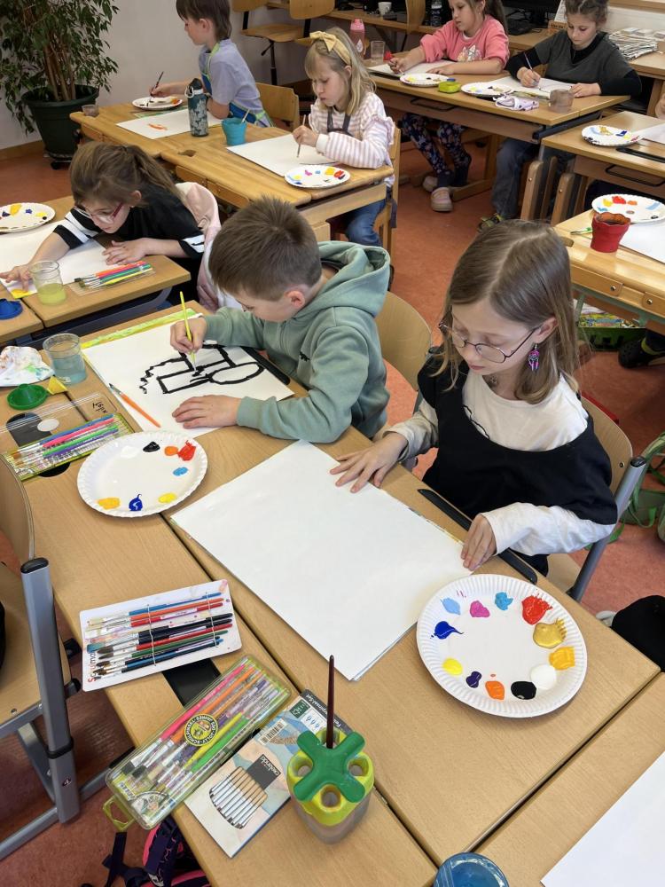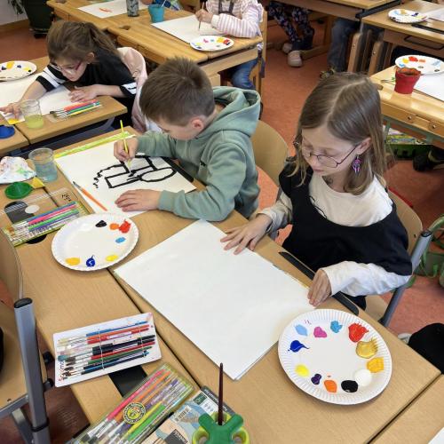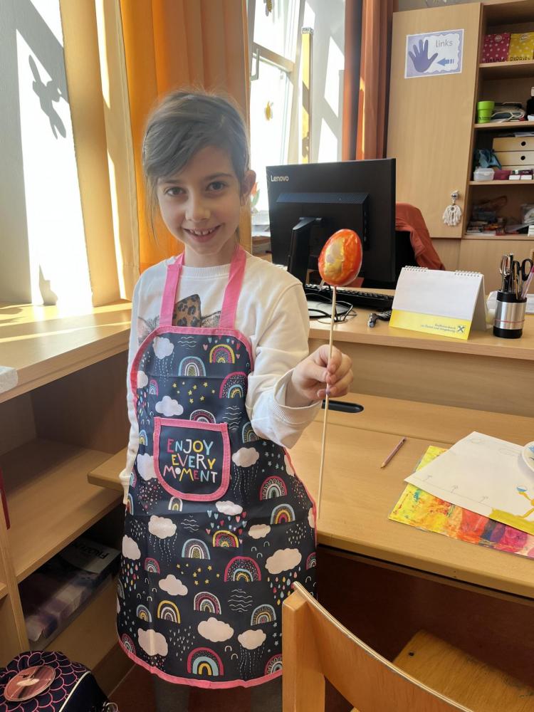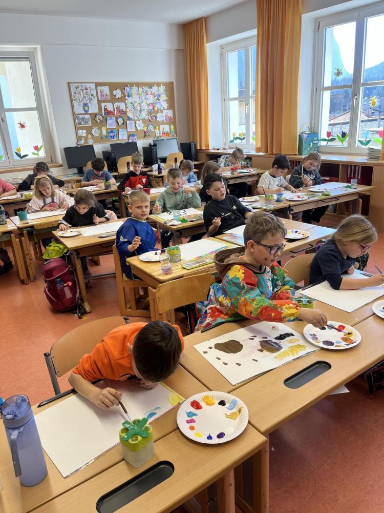 Gemeinsam mit einer Künstlerin arbeiteten die Kinder mit hochwertigen Gouachefarben und tauchten in die Welt der Farben ein. Mit großer Freude mischten sie eigene Farbtöne und probierten verschiedene Techniken aus. Dabei entstanden ganz individuelle und kreative Ergebnisse. Passend zur Osterzeit wurden die selbst gemischten Farben zum Bemalen von Ostereiern verwendet.
